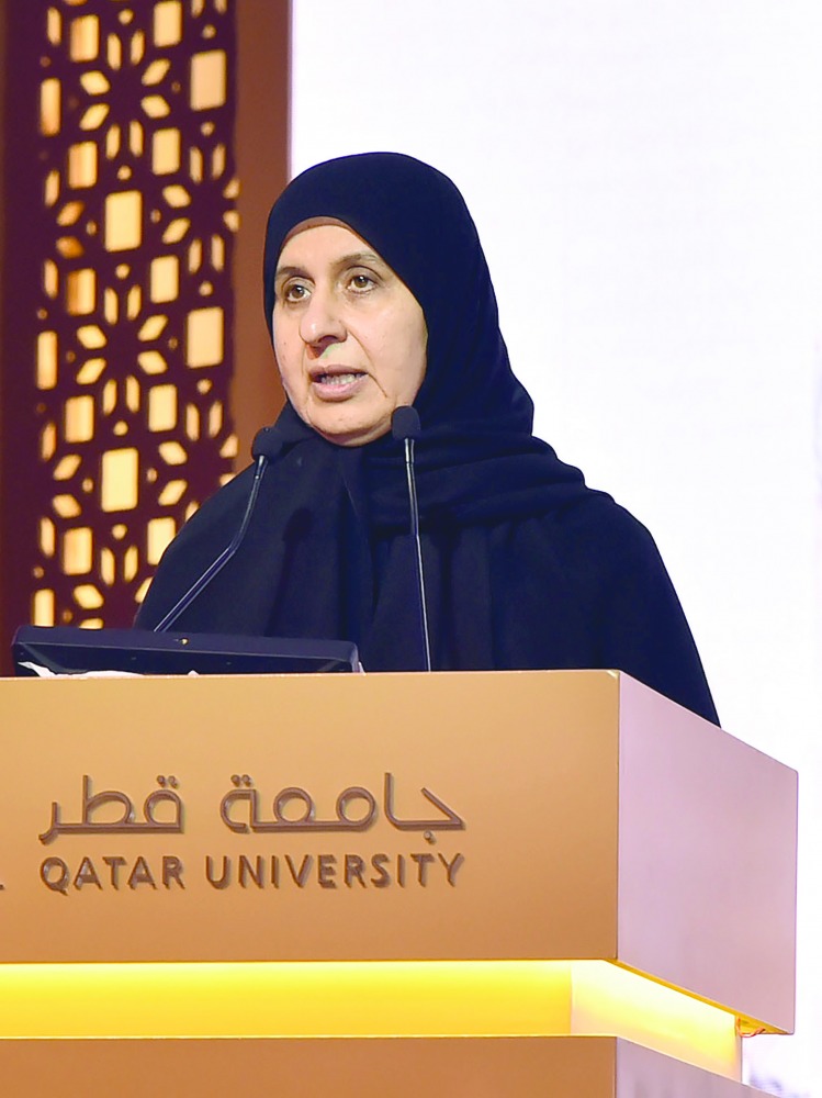 وتحدثت عن رحلة التطور التي مرت بها جامعة قطر، وقالت إن للجامعة رحلة طويلة بدأت منذ سنين، وقد قطعت جامعة قطر أشواطاً ومراحل عديدة في تطورها في شتى المجالات، مما جعلها تتبوّأ هذه المكانة المرموقة. فهي صرح علمي ثقافي وطني يثير الاعتزاز لكل من انتسب إليه وتخرج منه.