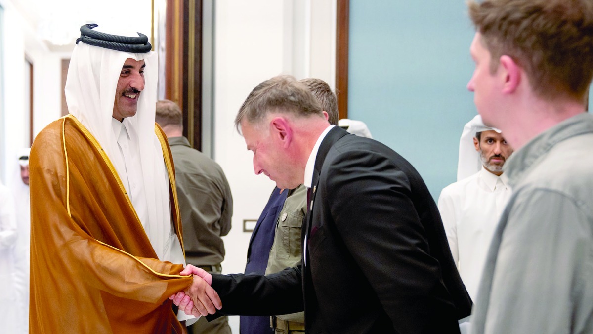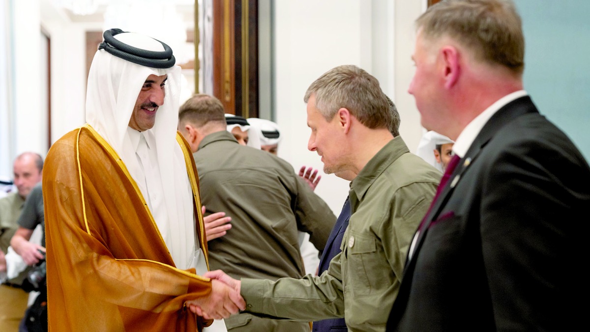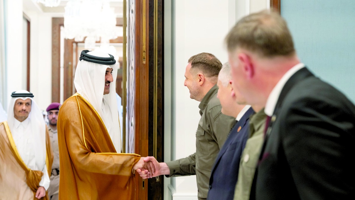 استقبل حضرة صاحب السمو الشيخ تميم بن حمد آل ثاني أمير البلاد المفدى، بمكتبه في قصر لوسيل أمس، فخامة الرئيس فولوديمير زيلينسكي رئيس أوكرانيا، والوفد المرافق له.