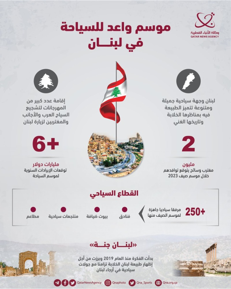 على الرغم من الأزمات السياسية والاقتصادية التي تعصف بلبنان، إلا إن لبنان يبقى بطبيعته الساحرة الخلابة وشعبه المحب للحياة، الوجهة المفضلة لدى السياح العرب والأجانب، وأبنائه المغتربين المنتشرين في غالبية دول العالم.