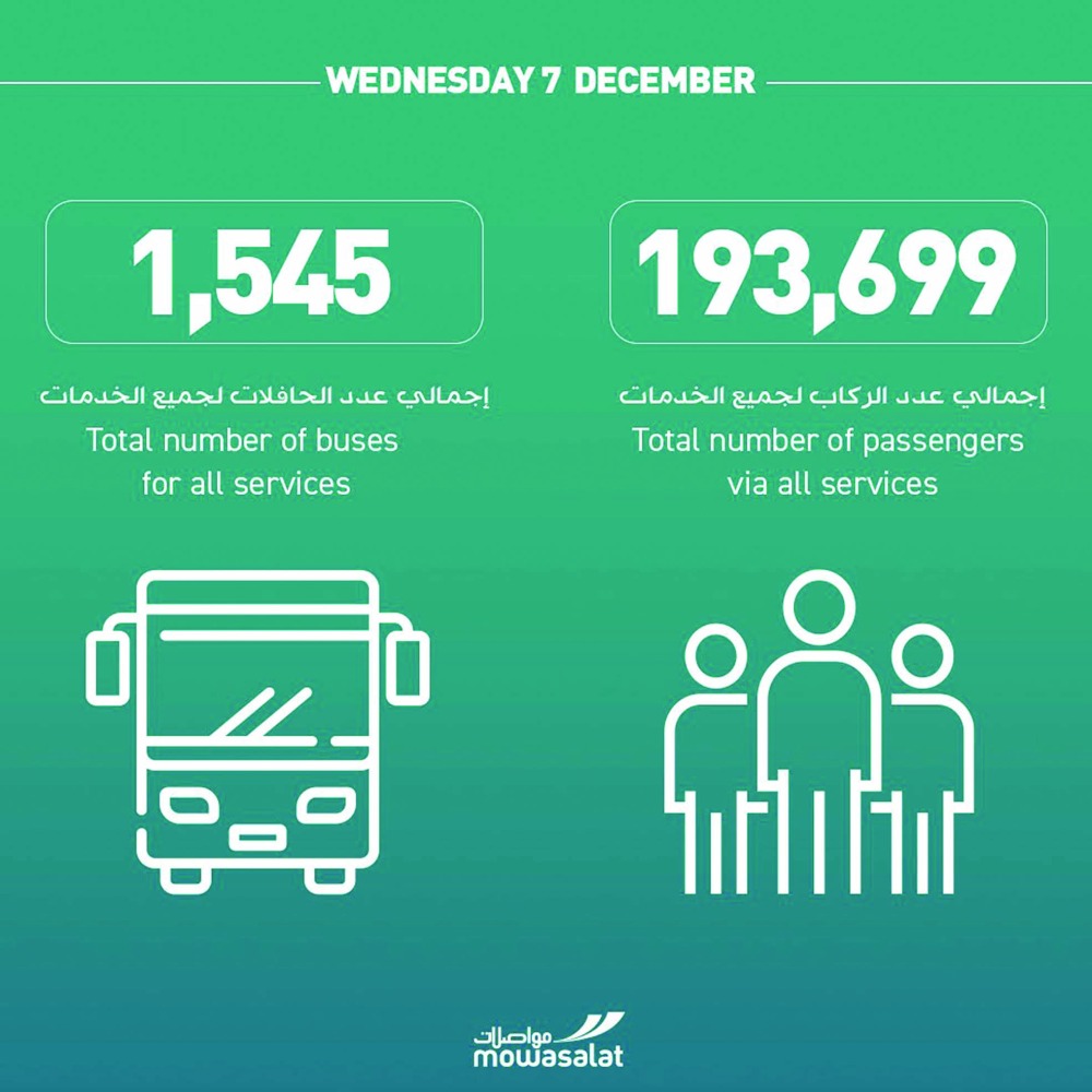 ووفقا لبيانات وزارة المواصلات شهد يوم الاربعاء الماضي نقل 642.192 راكبا في وسائل النقل العام المتعددة التي وفرتها الدولة..