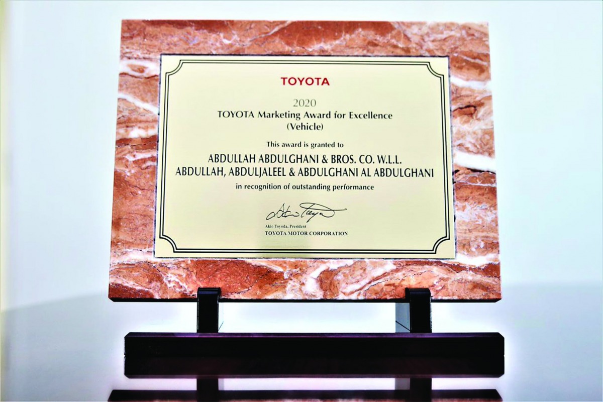 حصلت شركة عبد الله عبد الغني وإخوانه، الموزع الحصري لسيارات تويوتا ولكزس في قطر، على الجائزة الذهبية المرموقة. «جائزة تويوتا للتسويق الشاملة» من شركة تويوتا موتور كوربوريشين؛ تقديراً لأدائها خلال عام 2020. تم تقديم الجائزة خلال حفل افتراضي أقيم مؤخراً.