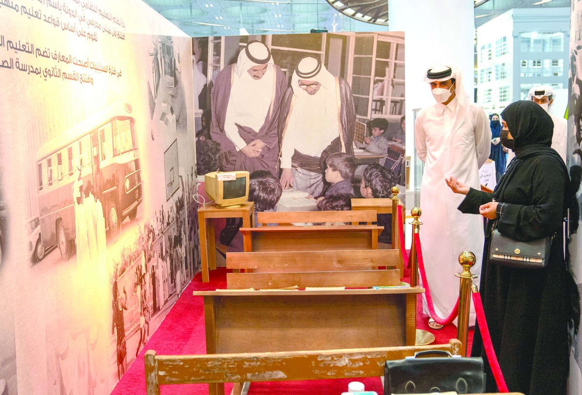 وتجول سموه في أجنحة المعرض حيث اطلع على مشاركة الجهات الحكومية والمؤسسات الثقافية المختلفة، ودور النشر القطرية والعربية والدولية، وعلى أحدث الإصدارات والكتب والأعمال الفنية والمخطوطات المعروضة، واستمع إلى شرح حول الفعاليات الثقافية المصاحبة للمعرض.