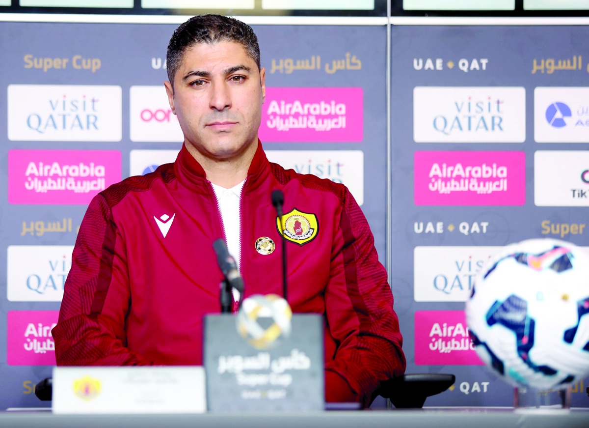 وقال «متحمسون لخوض النهائي، وأعتقد أن فريقي استحق المشاركة في السوبر، عطفاً على الأداء والنتائج في الموسم الماضي، ونعرف تماماً كيف نلعب المباريات المصيرية والمواعيد الكبرى، والفوز باللقب حافز مهم للفريق والجماهير». وقال: «شاهدنا المنافس في أكثر من مباراة، ونتطلع إلى تقديم أداء متميز»، لافتاً إلى معرفته الجيدة بلاعب قطر القطري بيرسي تاو المنضم حديثاً من الأهلي المصري، وقال: «دربت تاو سابقاً مع كلوب بروج، وهو لاعب متميز».