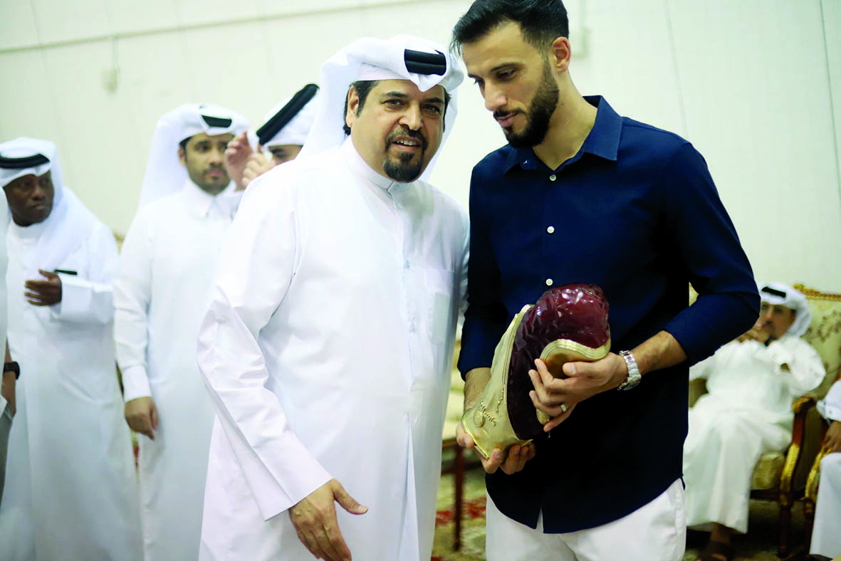 ولابد ان اشيد وأهنئ سعادة الشيخ تميم بن فهد آل ثاني رئيس النادي وأخاه محمد جاسم الكواري نائب الرئيس والأب الروحي للعرباوية الدكتور عبدالله يوسف المال وباقي الاخوة في الإدارة وجميع عشاق ومحبي العربي وجماهير كل الأندية التي تشرفنا بحضورها لنا للتهنئة ومشاركتنا افراحنا.