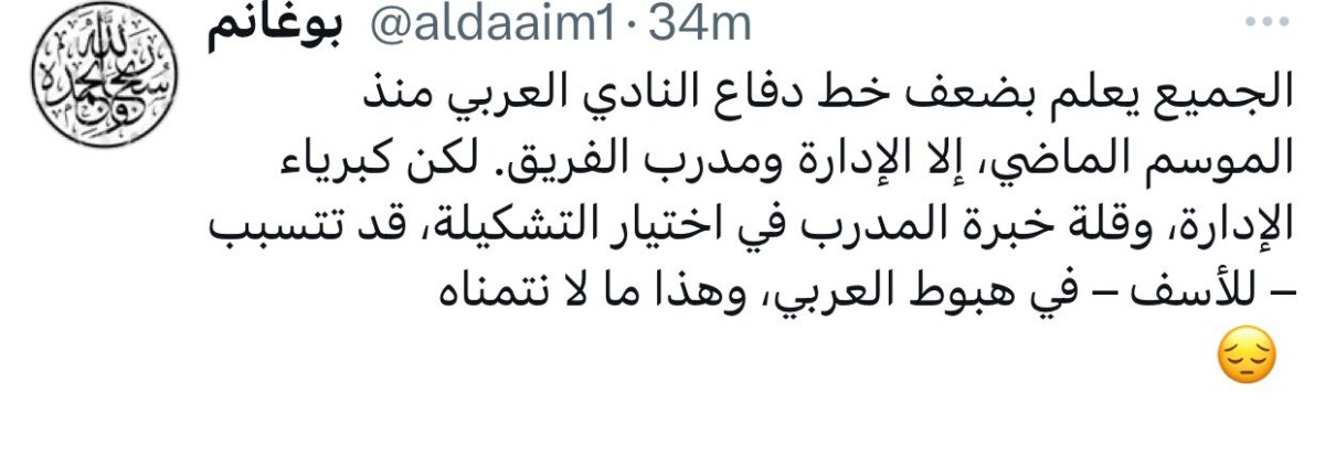 فالجماهير العرباوية لم تخف استياءها، حيث طالبت عبر منصات التواصل الاجتماعي بإجراء تغييرات شاملة وجذرية داخل النادي، محمّلة المسؤولية في المقام الأول للمدرب الإسباني بابلو أمو، الذي اعتبرته غير قادر على إدارة المباريات وقراءة المنافسين. الجماهير شددت على أن المدرب لا يصلح لقيادة العربي في هذه المرحلة الصعبة، وأن بقاءه قد يقود الفريق إلى مصير مظلم.