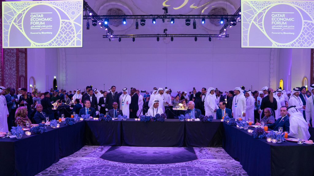 وقد حضر سمو الأمير المفدى مأدبة العشاء التي أقيمت بمناسبة انعقاد منتدى قطر الاقتصادي 2023 بالتعاون مع بلومبيرغ، تكريما لأصحاب الفخامة والسعادة رؤساء الدول والحكومات وكبار المسؤولين من مختلف دول العالم المشاركين في المنتدى اليوم.