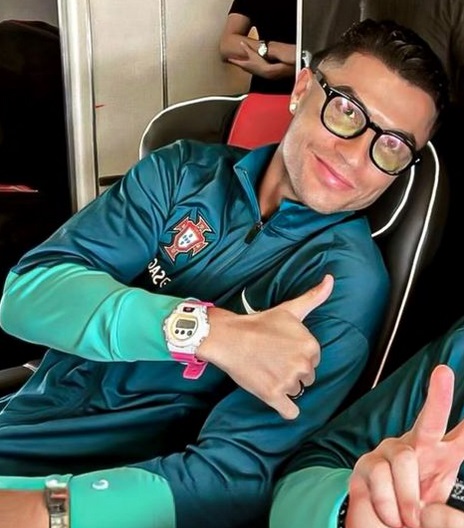 وارتدى كريستيانو رونالدو الساعة الخاصة بجورجينا أثناء سفره إلى سلوفينيا للعب مباراة ودية ضمن عطلة مارس الدولية تحضيراً لكأس أمم أوروبا 2024.