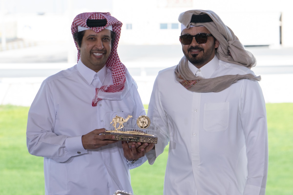 وتوج سعادته بالشلفتين الفضيتين كلا من السيد عبدالهادي خليل الشهواني مالك الهجن "مصيونة" بعد فوزها بلقب شوط الحيل /عمانيات/، والسيد زايد محمد المنصوري مالك الهجن "بيان" إثر حصدها لقب شوط الحيل /إنتاج/.