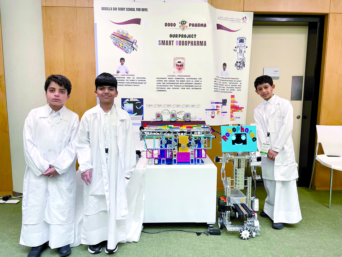 قدّم ثلاثة من طلاب مدرسة عبدالله بن تركي السبيعي الابتدائية للبنين مشروعا مبتكرا تحت عنوان «صيدلية روبوتية ذكية»، يهدف إلى تصميم روبوت يقوم بترتيب الأدوية بشكل آلي وتفاعلي، مع برمجة خاصة للتحكم به وإدارته باستخدام تقنيات الذكاء الاصطناعي، بهدف تقليل ازدحام المراجعين أمام الصيدليات بالمستشفيات في الدولة.