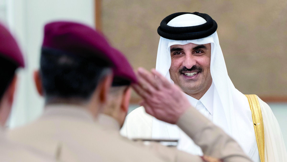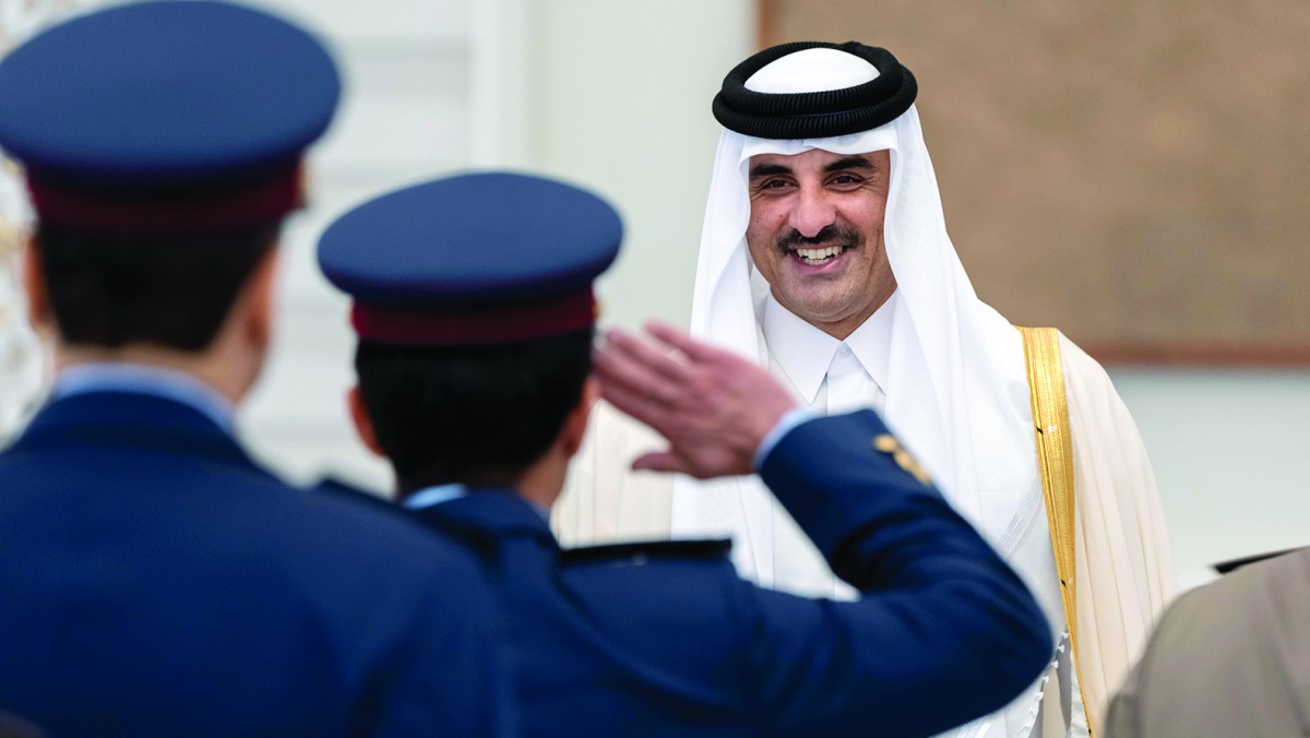 استقبل حضرة صاحب السمو الشيخ تميم بن حمد آل ثاني أمير البلاد المفدى جموع المهنئين بعيد الفطر المبارك في قصر لوسيل صباح أمس. فقد استقبل سموه حفظه الله بعد صلاة العيد كلا من معالي الشيخ محمد بن عبدالرحمن بن جاسم آل ثاني رئيس مجلس الوزراء وزير الخارجية، وسعادة السيد حسن بن عبدالله الغانم رئيس مجلس الشورى، وأصحاب السعادة الشيوخ والوزراء ووكلاء الوزارات وأعضاء مجلس الشورى وجموع المهنئين من السادة المواطنين.