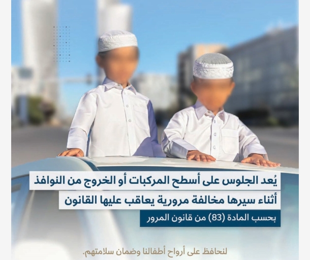 الداخلية تحذر من الجلوس على أسطح المركبات أثناء القيادة
